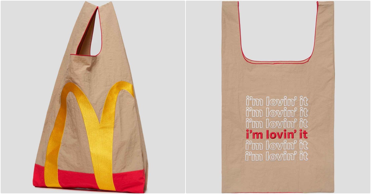 確定不是要外帶套餐回家(笑)?這系列居然把麥當勞的紙袋神還原變成「手提袋」,乍看只是多了手提設計,其實採用內建防水機能的厚尼龍材質,絕對不怕雨天超耐用,同時還印上全球傳唱超過20年的「i’m lovin’ it!」字樣。