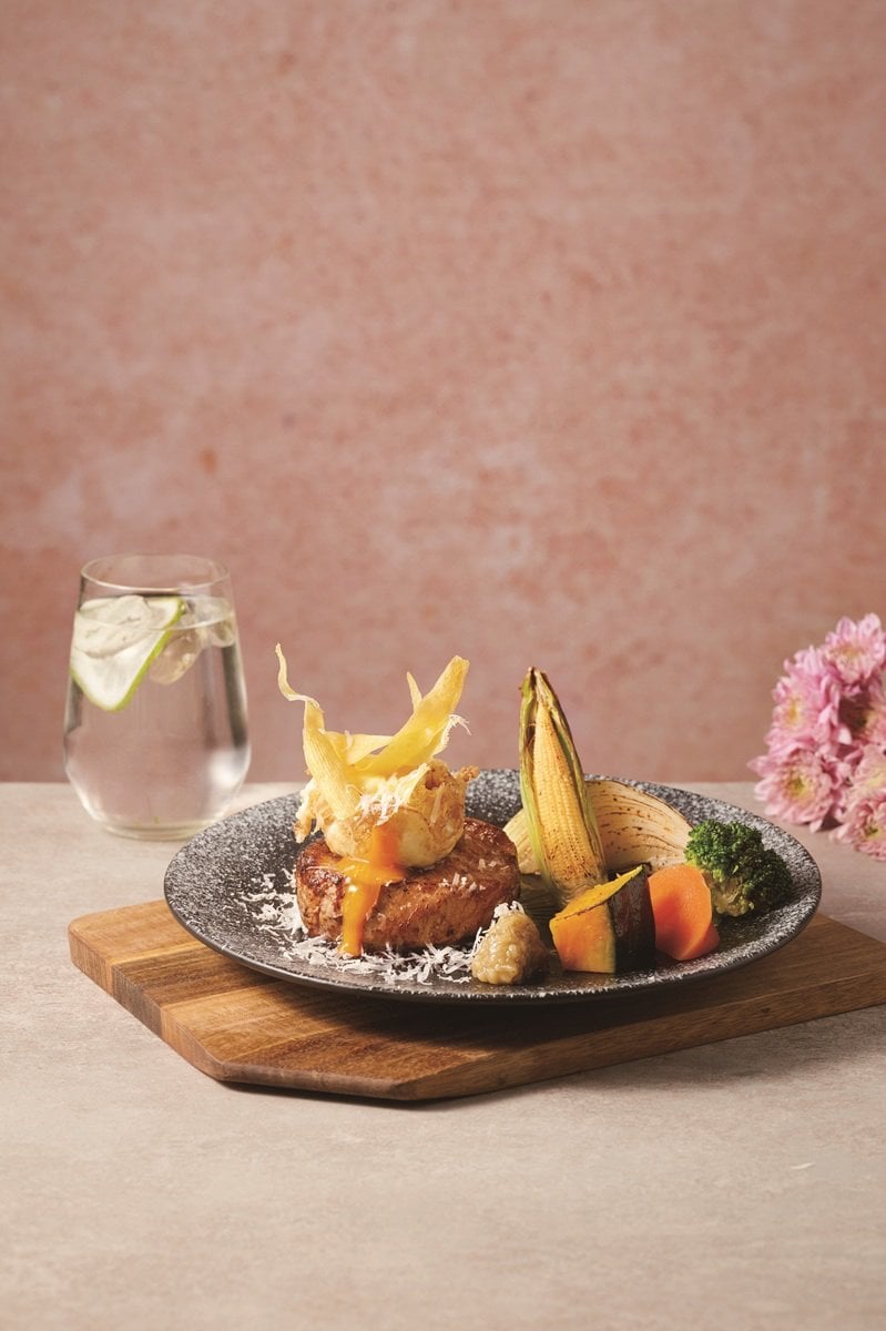 火候炙烤,鎖住外層焦香與內裡豐盈肉汁,搭配時令蔬菜點綴,份量感從視覺