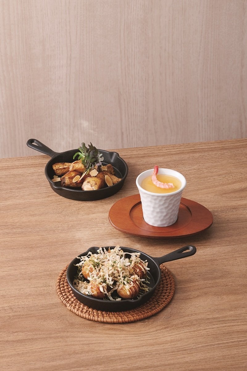 還沒入口,手機就先開動。「跳舞章魚燒」熱氣騰騰搭配鑄鐵鍋直接端上,看