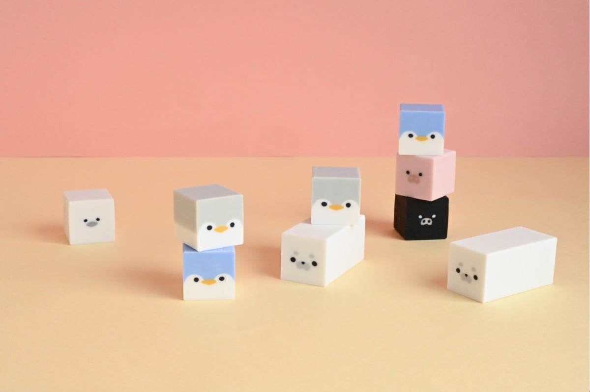 隨著使用角度與方式不同——橡皮擦會逐漸產生不同形狀變化,最後甚至演變成各種獨特的小動物造型。每一塊都會變成專屬於使用者的樣子,真正實現「文具個人化」與「使用即創作」的概念。