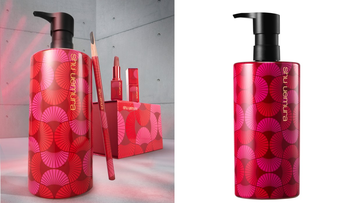 色彩霸主植村秀,今年新年推出限量系列,包裝以象徵繁榮和幸福的「 扇形」圖案,迎接新氣象。經典熱賣的山茶花精粹潔顏油,添加頂級山茶花精華與荷荷芭籽油、紅花籽油等,絲滑質地在按摩過程不拉扯,卸後肌膚仍有保濕感,這次也推出了新年限量版。