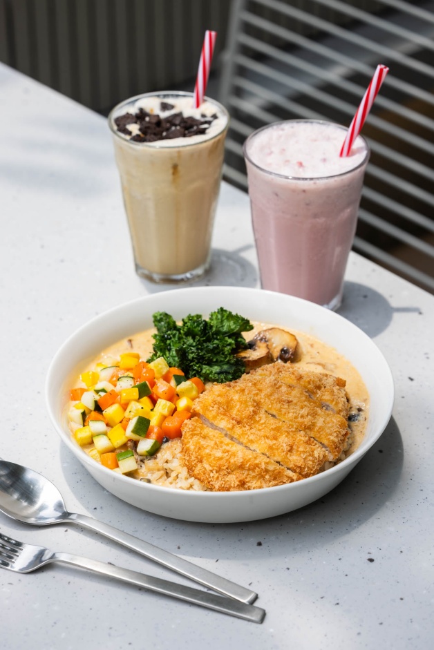 全新菜色充滿濃郁奶香的「奶昔」,致敬茉莉漢堡的經典,精選北海道乳源冰淇淋,「香草奶昔」帶有焦糖風味,上頭還灑上巧克力脆脆!