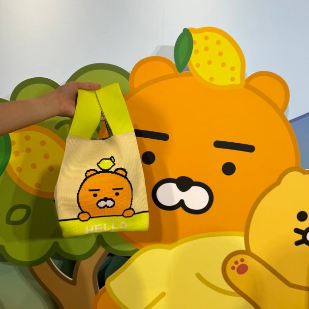 「Hello萊恩針織袋」可見呆萌萊恩頭上頂著象徵青檸蛋糕的檸檬,適中的大小不僅可以拿來當外出提袋,出去購物時也能使用!