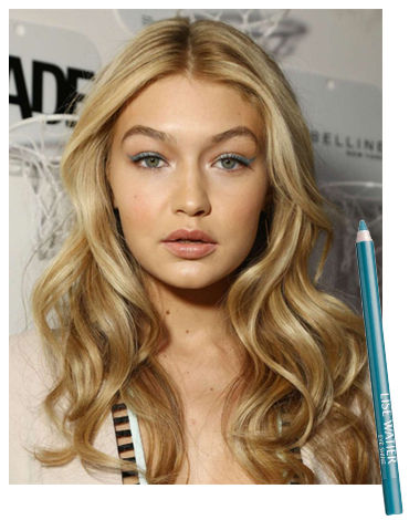 像超模吉吉哈蒂德也有使用藍色的眼線,她用藍眼線勾勒出明亮的眼神,還在眼皮上大做文章,將眼尾勾勾勾,勾到非常鮮明的位置,讓她點綴你無聊的妝容,是不是看起來特別夏天呢?