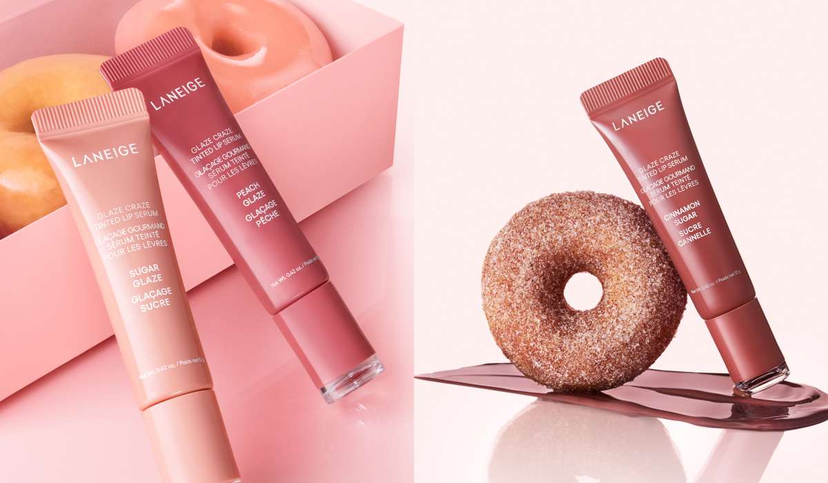 一開賣就掀起討論話題的「甜甜圈澎潤水唇釉」,靈感就來自人氣甜點甜甜圈,蘊含高濃度保濕精華,上唇有超高顯色度與玻璃般透亮光澤,搭配獨家的甜甜圈矽膠唇刷,Q彈柔軟完美貼合雙唇,輕鬆均勻上色不卡紋。目前最受歡迎的色號為覆盆莓紅、楓糖紅棕、肉桂糖霜。