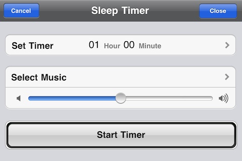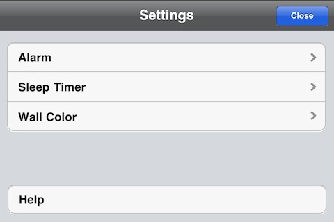 按下右上角的「i」,就可以進入程式設定,這個程式的主要功能有兩個,一個是以時間為主的「鬧鈴功能」,另一個則是「休眠計時器」。