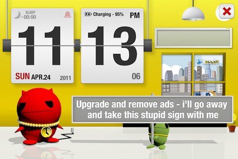 右邊地上還站著一個綠色的小怪獸,手上舉著一個和自己身體不成比例的牌子,由於Hsuan測試的是免費版,所以牌子上面寫的就是建議我去更新最新的程式,牠就會把廣告移開!