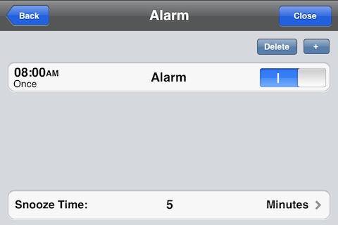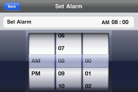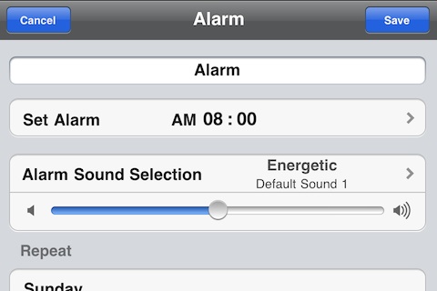 點一下Alarm「鬧鈴」進入鬧鈴的調整,程式設計以iphone使用者所習慣的介面為主,很容易上手!