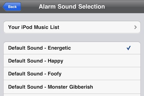 只要點選欲修改的內容,就可以做細部的修改,鬧鈴的音樂可以選擇以自己手機的音樂為喚醒你的聲音,也可以選擇程式內建的小怪獸音樂,讓牠在早晨為你帶來耳目一新的感受。
