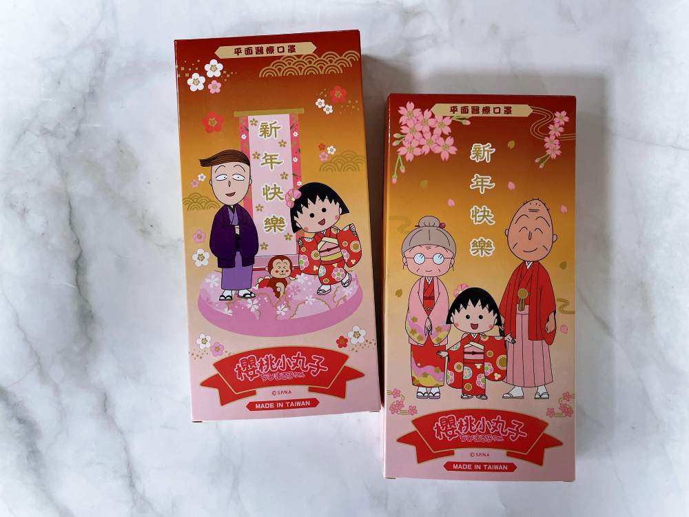 《櫻桃小丸子》聯名口罩以新年為主題,盒身放上穿著日本和服的小丸子、花輪、爺爺與奶奶搭配飄散的花朵,花色共有紅、粉兩款,紅款放上小丸子與花輪,相當有年節氣氛;粉色款則以小丸子為圖案,可愛風格相當中少女心。1月29日早上11點起於PChome 24h購物限量開賣(點我前往),共有大人、兒童與幼幼三種尺寸可選,粉絲們快筆記好時間!