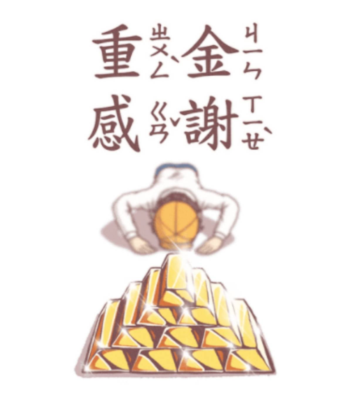 一早起來刷股市發現買的股票大漲,超適合用這張「早安,窮人們」來跟朋友炫耀!從眼鏡至帽子都變成鑲金款,金光閃閃實在太耀眼,不過記得慎選使用對象,跟對方不夠熟可別亂傳,因此上法院不關手機小姐的事哦!(推卸責任)