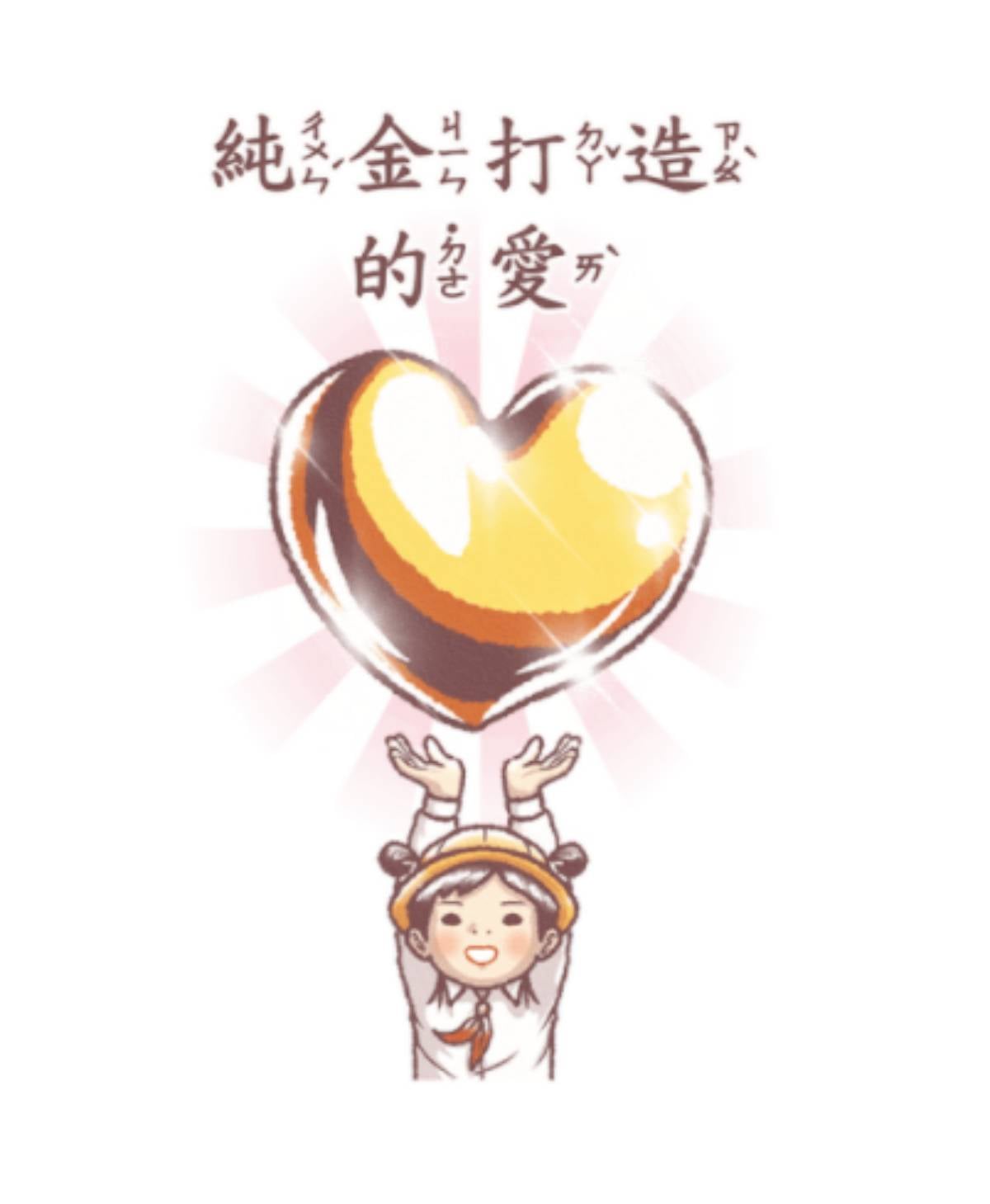 跟兩人有關的物品也都變成金光閃閃的物品,示愛時直接捧上純金愛心,表達感謝時跪地奉上閃亮金條,雖然很有炫富嫌疑,但可是誠意滿滿,相當實用。(大拇指比讚)