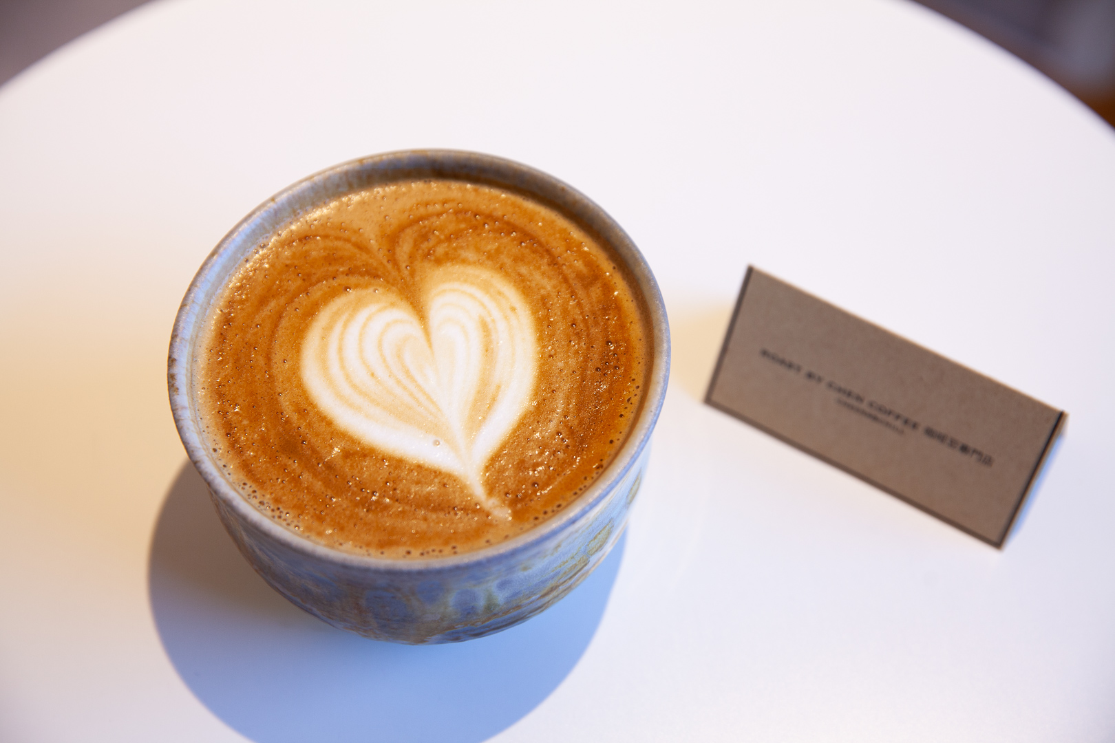 環境多採用暖系木質色調的ROAST BY CHEN COFFEE,也因為身在住宅區內,讓人彷彿回到自家中的錯覺,自在又放鬆。這家店的設計風格為開放式格局,麻雀雖小五臟俱全,為了與顧客互動、對話、共鳴,店面空間有一半以上用來展示烘焙咖啡的製程、咖啡師沖煮過程、