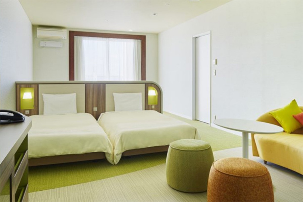 以新鮮水果為概念所設計的4人房型用色相當活潑,可走到陽台賞風景的大片落地窗設計,一進去房間就可以感受空間的明亮寬敞,因為飯店就位在東京灣旁邊,部分房間還有機會從房間眺望到無敵海景!早上起床眺望遠方天海一色的風光,度假氣氛滿點,適合想被海景療癒的三五好友們。