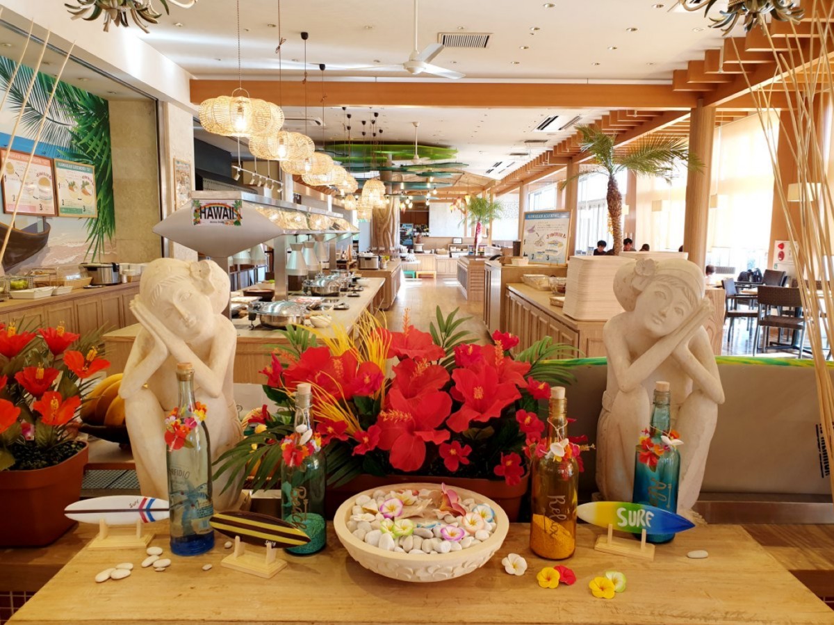裡面的自助式早餐,除了有提供豐富的日式跟西式餐點,還有提供別的飯店沒有的「夏威夷」餐點,在這裡你可以運用各種水果與配料裝飾七彩繽紛的夏威夷鬆餅,也可以自己嘗試製作可口的夏威夷米飯漢堡,或是自己來調配健康又營養的巴西莓果碗來品嚐,不但能體驗製作的樂趣,也能品嚐到夏威夷料理的美味。