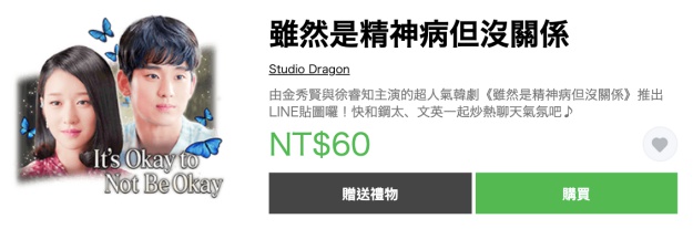 Studio Dragon除了新的李政赫貼圖之外,之前也同樣人氣超高的韓劇《雖然是精神病但沒關係》貼圖也有,可以兩組一起收到貼圖庫裡!