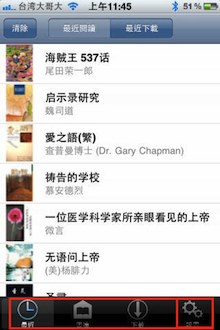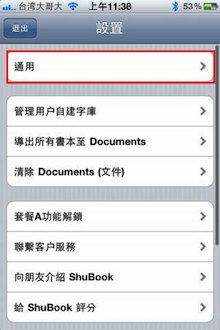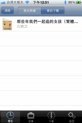 ShuBook的介面並不華麗,安裝完成後,點進去就會進入功能頁,如下方工具列所示,包含「最近」、「書庫」、「下載」以及「設置」頁面。由於ShuBook是來自對岸同胞之手,打開後是以簡體中文的方式顯示,所以首先當然是到「設定」中修改相關設定。路徑是「設置」→「通用」→「應用語言」以及「簡繁漢字轉換」。我們在這裡將「應用語言」修改為繁體中文,「簡繁漢字轉換」當然設定成「台」,表示台灣地區所使用的中文。
