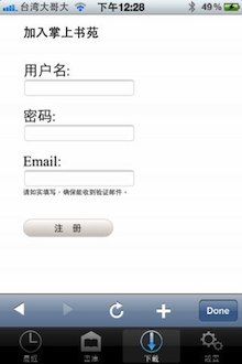 但下載書籍之前,我們需要申請掌上書苑的帳號。路徑為「掌上書苑」→「書苑使用說明」→「馬上加入掌上書苑」,接著填入你所想要的帳密與email即可。接下來我們就可以開始下載電子書了。
