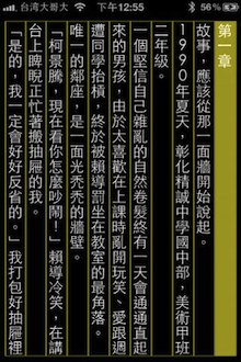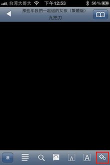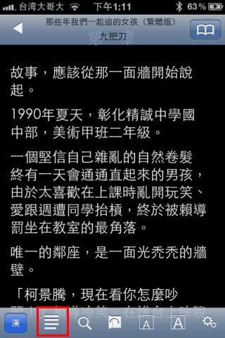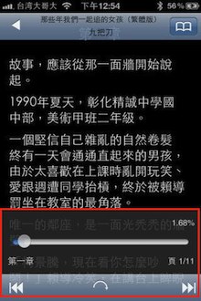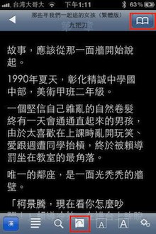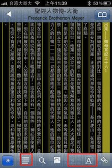 或者可以按下左邊數來的第二個按鈕,就可以轉換橫式或直式的閱讀方法,也可以按下方的兩個「A」圖示來更改字體大小。