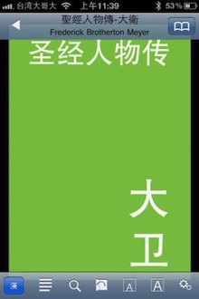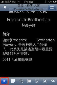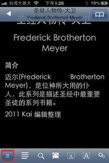 接著我們再以之前小編下載好的簡體版「聖經人物傳-大衛」來做個簡單說明,打開後你會見以簡體方式顯示的內容。你只要按下左下方的「漢」按鈕,就能一鍵進行簡繁轉換唷,好久以前所做的設定,現在總算用上了,很厲害吧!