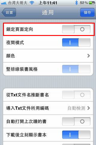 如果書籍裡頭的「設置」→「通用」→「鎖定頁面直向」的功能打開的話,也可以將以橫向的方式閱讀書籍,隨你自己的喜好唷。