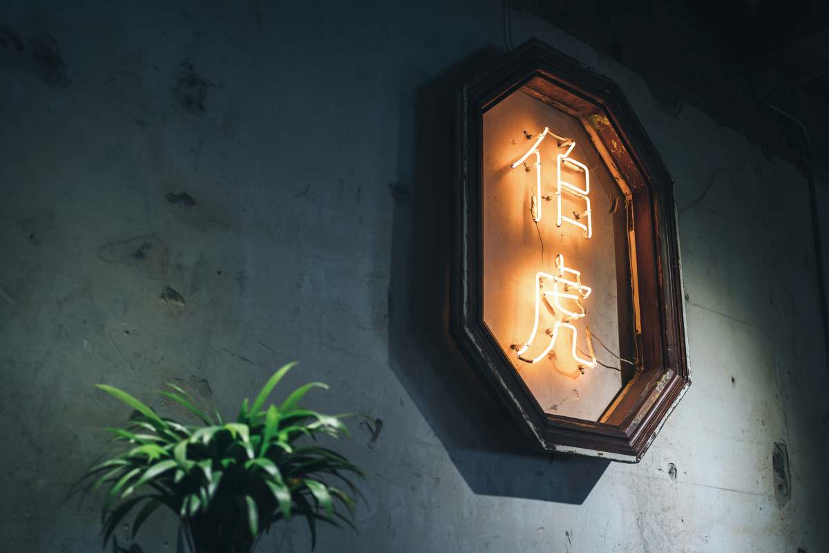 一樓入口處,牆面斑駁,可見歲月。從狹小的磨石子階梯向上,推開門,眼前的陳設帶出時空置換的錯覺,彷彿剛剛貫穿的不是樓梯,頗有搭上時光列車之感。懷舊招牌以舊時香港街頭特有的霓虹燈管拉出「伯虎」二字,牆上一面又一面古董鐘,時間各異。或許當伯虎遇上秋香,分秒的快慢再不重要,又或者這是店主想帶給到訪者的氛圍,既抽離空間,也凝結了時間。
