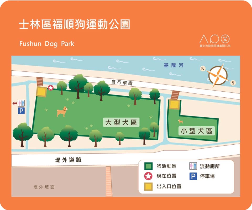 這座狗狗公園名叫「福順狗運動公園」,是以士林區福順里里名命名,這樣大家也比較好了解相對位置,附近停車方便、也有很多空間可以讓毛孩散步;而757路「臺北市週末假日友善狗狗公車」也能直達此處,民眾只需牽繩就可以帶狗狗上車、下車,一條龍的寵物友善政策其實相當便利。(台北市14條週末寵物公車路線)