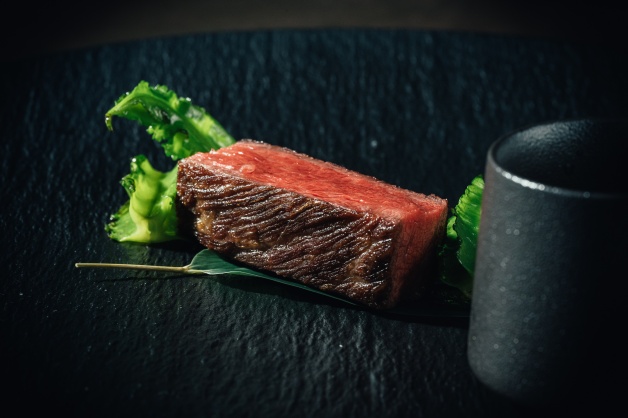 「野 強肴」象徵山中打獵,選用「M9+和牛翼板」為主食,並以櫻桃木煙燻和直火雙處理法,配菜為原住民部落的獨特蔬菜「翼豆」,一旁的小碗並非沾醬,而是小湯品,選用山中隨處可得的中藥材與辛香料燉煮而成的「牛骨茶」!