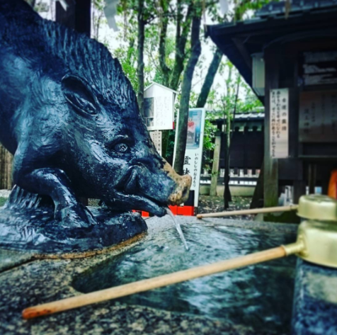 從此,神豬就被認為是守護家庭安全,並且可以治癒腳痛、腰痛等疾病的神之使者。因此這座神社裡的守門神及水手舍的雕像都是山豬形狀,而御神籤當然也是山豬造型的囉~