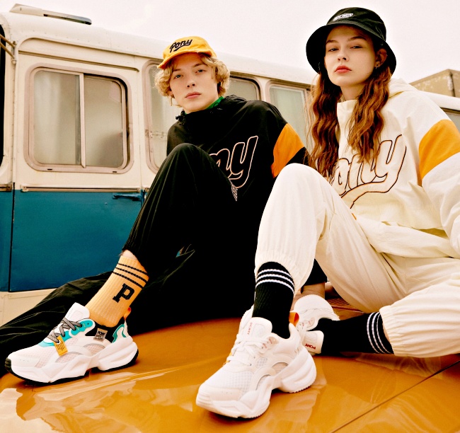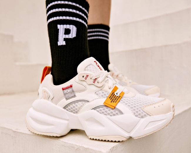 PONY這雙NS501以奶油白為鞋身主要色系,只在細節處點綴燕麥米色塊,同時還加入亮橘色、紅色,鞋身同時以圓形裁片層層堆疊出鞋面流暢線條,網布及皮革等不同材質增添整體視覺豐富度,乍聽很花俏對吧(笑)?其實視覺上依舊簡約百搭,低調派妞妞們也能駕馭!