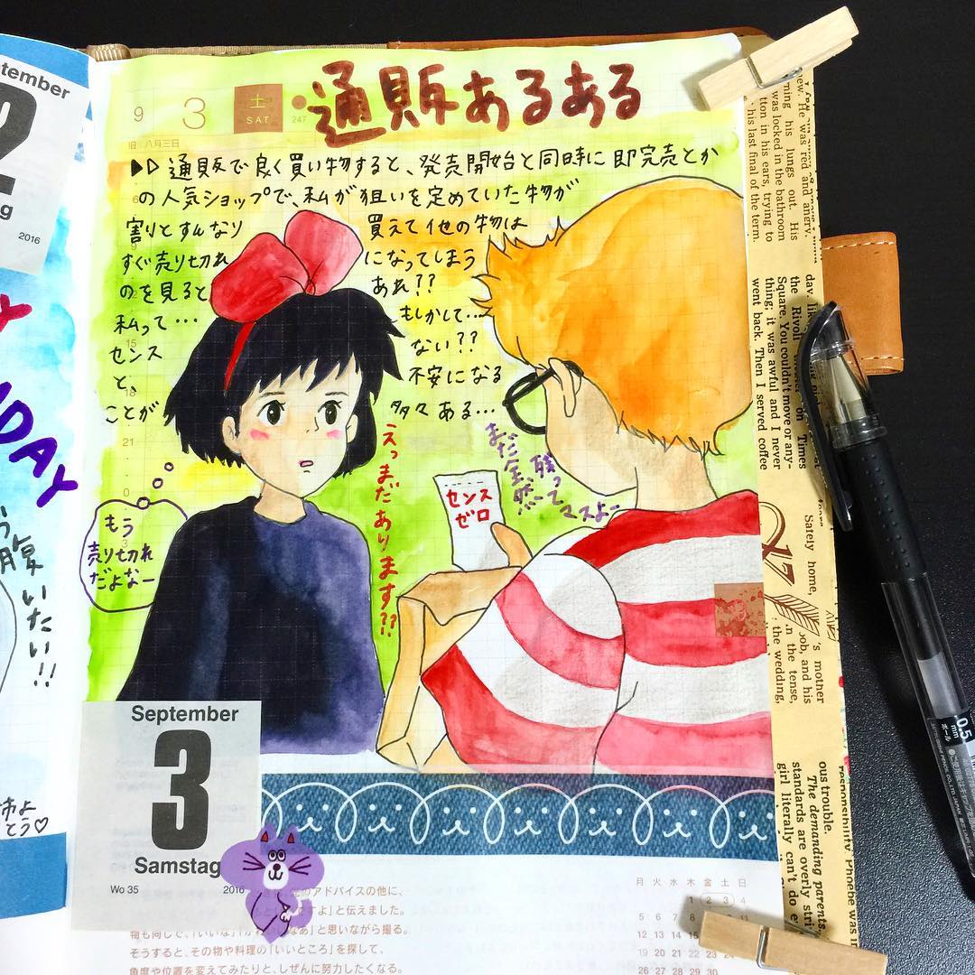 完美重現吉卜力既暖心又帶些復古氛圍的畫風,彷彿印刷出來的一樣精巧!如果女孩們也喜歡なみへい的手繪手帳,不妨也到她的IG繼續發摟新作品喔!