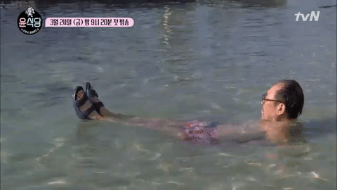 前輩們看起來都相當喜歡這地方,像是申久爺爺泡在水中看起來超級享受的,而且汝貞姐姐開心地坐在紅鶴游泳圈上,看起來也年輕了好多歲!