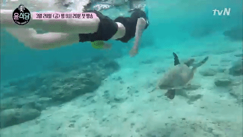 鄭有美整個超級適合海島國家的!因為不管滑衝浪板、浮潛都好像在拍畫報,並且超級幸運地遇到海龜~真的很令人羨慕耶!