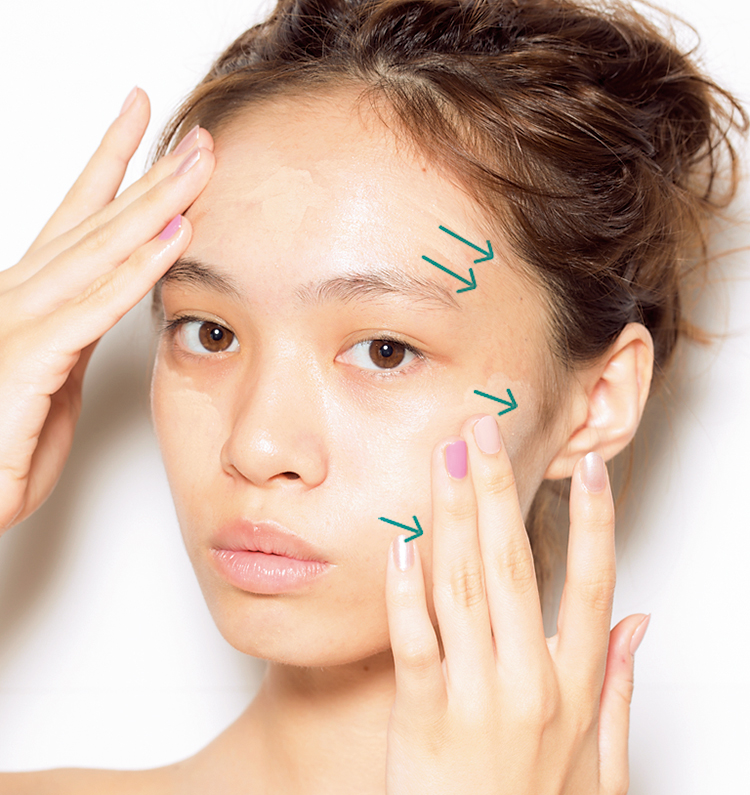 要完成濕潤感妝容除了底妝的選擇很重要,上妝方式也是重點之ㄧ。上底妝時,從臉部的內側至外側輕輕推開,且底妝用量切記輕薄,在瑕疵較多的部位可以少量多次、慢慢推點開來,完成自然不厚重的底妝。
