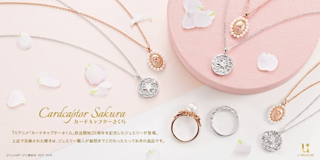 庫洛牌、小櫻牌、透明牌各自代表的「3大魔法陣」,也被實體化打造成聯名項鍊,立體的魔法紋路以925白銀以及K10玫瑰金勾勒而成,背面則採用珍珠母貝材質,隨著視角的不同,閃耀神秘的魔法光彩,象徵拿起變身鑰匙、腳尖下魔法陣打開解除封印的經典場面。