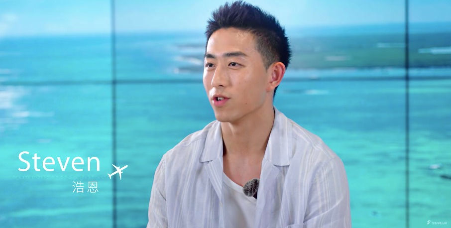 來自美國西雅圖的「Steven」,目前是位小提琴家及籃球教練,年僅21歲的他是所有嘉賓裡面年紀最小的代表,平時興趣是旅遊、養寵物、音樂,Steven除了平時訓練籃球選手,自身的體態也維持非常結實,第一天約會對象選擇「珈儀」,愛講幹話習慣也主動詢問女嘉賓是否會有聊天底線。