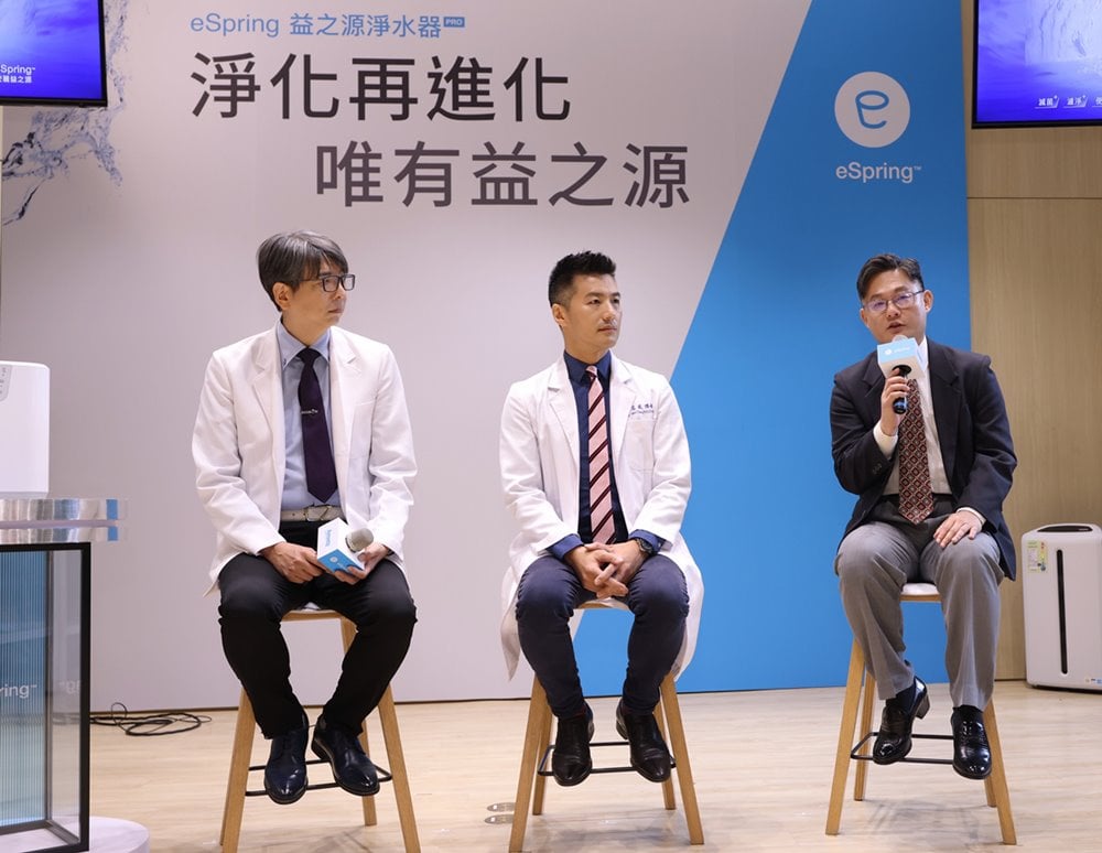(左起)三軍總醫院腎臟科兼任主治醫師洪永祥、中原大學生物科技學系教授招名威、北醫大公共衛生學系教授胡景堯共同針對水資源污染議題進行探討