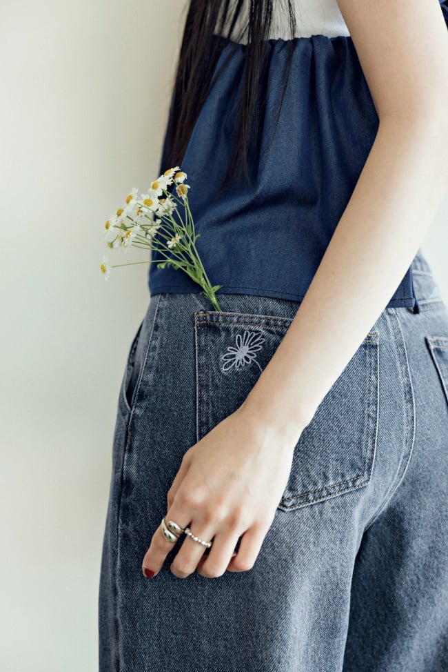 俐落、百搭的牛仔寬褲,千千加持款在細節處就是跟別人不一樣,挺版寬褲版型結合刷白造型,視覺上更加顯瘦,在後口袋還裝飾可愛的「小雛菊刺繡」,不用擔心「落不了地」,特別打造千千限定褲長S+,滿足高個子女孩的需求,更多單品請等3月29日PAZZO首間台中實體門市上架,4月1日官網、台北門市開賣喔!