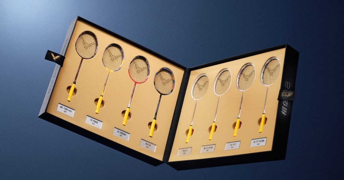 VICTOR這次特別以「致敬球后榮耀時刻」為概念,推出八支迷你戰拍組,從她初期的ART-Ti99 CLASSIC、東京奧運時期的簽名拍TK-F C LTD,到融合高端科技的頂級之作TK-TTY Ultima,全都濃縮在這組超華麗收藏中!