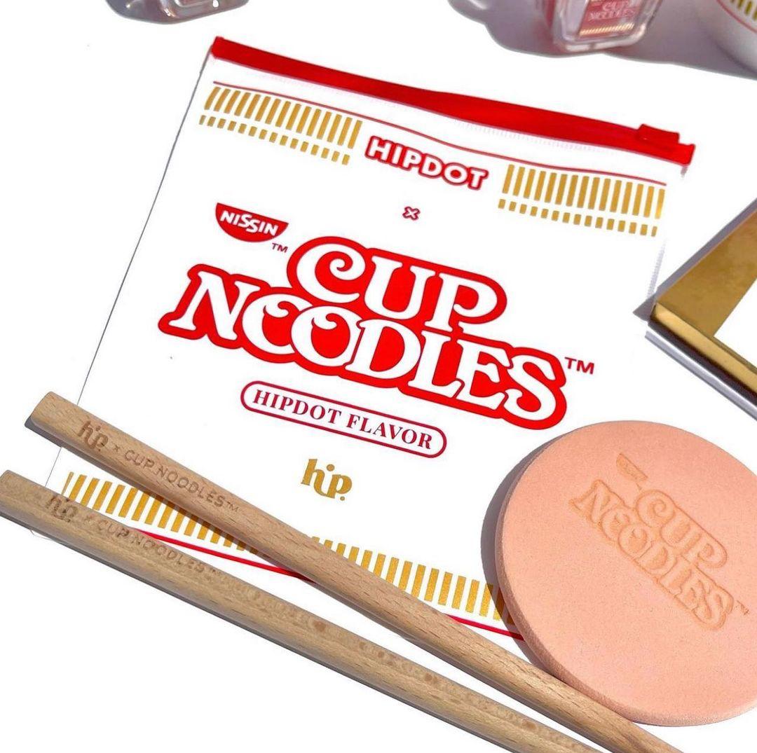 為了迎接日清上市50週年,特別攜手美國彩妝品牌HipDot,推出「HipDot x Cup Noodles」系列,光視覺就好衝擊(自飄味道?!),販售的方式也套組呈現,最有趣的是禮盒內還附贈筷子、軟式的杯麵套(可當收納袋)還有一個造型粉撲,整系列真的太幽默了!
