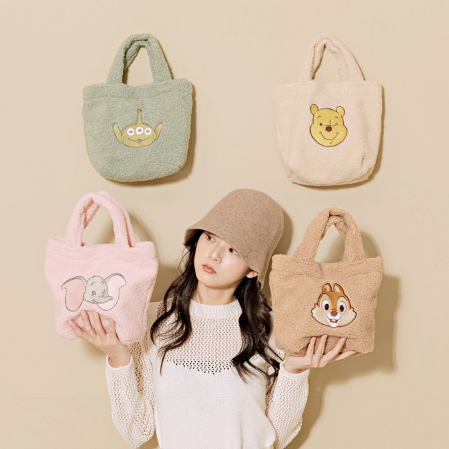 小飛象、小熊維尼、奇奇蒂蒂、三眼怪…迪士尼不同棚(?)的人氣角色們出沒在毛毛包上,萌度更加倍啦!Grace Gift最新「毛朋友新系列(Fluffy Festival)」中有一系列角色手提袋,角色特寫大頭、粉嫩色系搭配QQ粒毛,是不是要選擇障礙了?(笑)