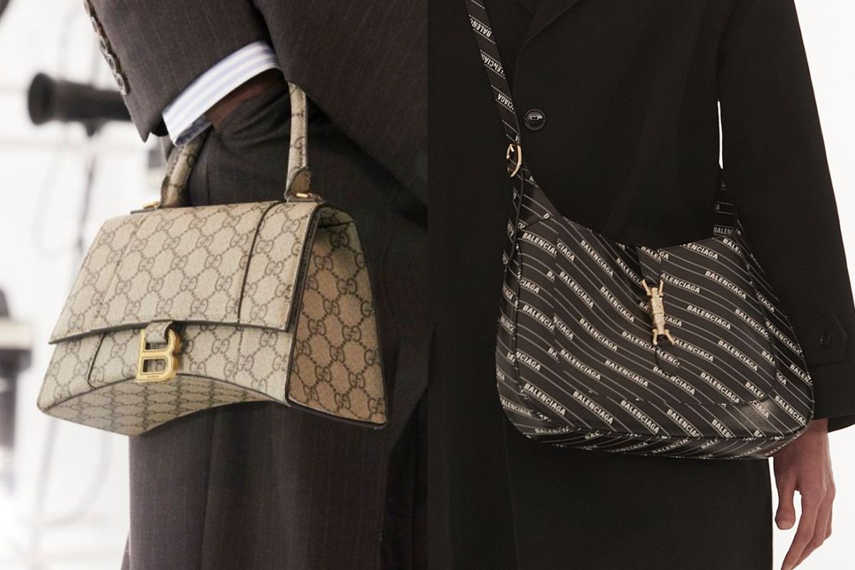 在包款上有GUCCI的Jackie 1961賈姬包款,直接換上Balenciaga的滿版標誌設計,而Balenciaga熱賣的沙漏包,則是保留了包蓋上的B字綴飾,搖身一變換上了GUCCI的雙G經典老花Lago,展現了與原本包款不同的時髦風格!