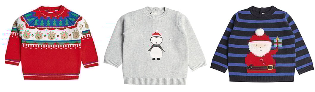 紅色/馴鹿精織套衫 NT.349 、深綠色/聖誕圖案貼花套衫 NT.699(由左到右)