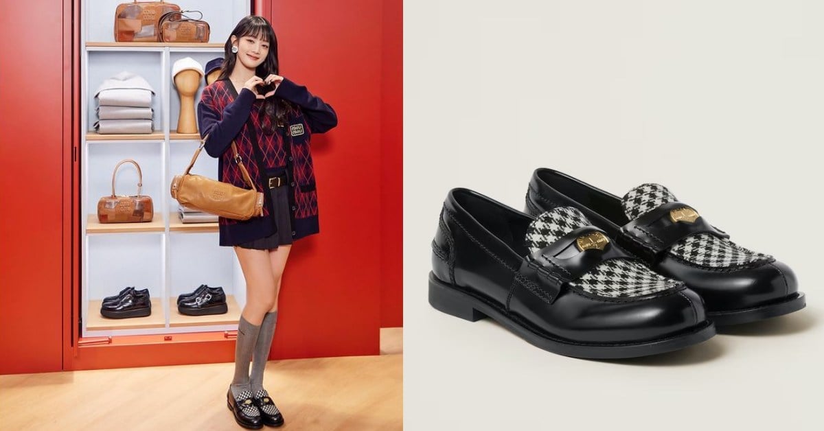學院風穿搭最適合和樂福鞋做搭配,MIUMIU無帶便鞋靈感源自於50年代美國預科學院及大學校服的一部分,當時的學生因對穿著校服感到厭煩,開始將一枚閃亮的硬幣塞進便鞋皮革搭帶的狹縫裡而聞名!MIUMIU將復古的鞋款結合了千鳥格和拋光的皮革設計,Minnie搭配校園制服風展現冬日的英倫學院感,日常搭配素色單品也能成為穿搭的小亮點!