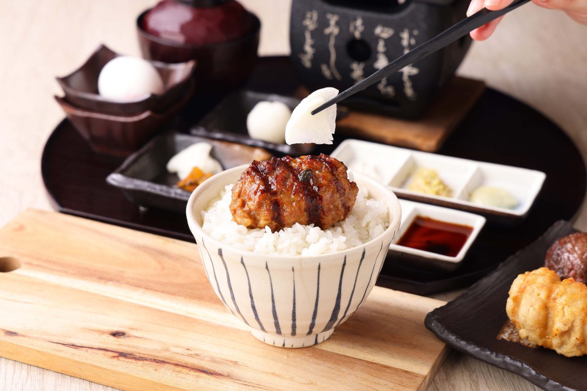 店內提供3種漢堡排口味,「牛肉漢堡排」以日本A5和牛為主,搭配美國安格斯黑牛製作而成,僅以胡同椒鹽進行簡單調味,口感厚實並帶有彈性;針對不吃牛肉的顧客,還有「雞肉漢堡排」可選擇,嚴選本土培育的金璟雞與國產雞腿肉為主要食材,而「豬肉漢堡排」挑選來自台東關山養殖牧場的「晶鑽豬胛心」製作,並以特製赤味噌進行調味。