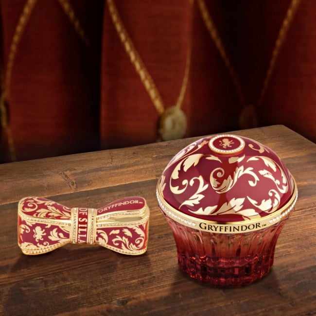 以貴金屬琺瑯打造而成的四大學院香水,分別配色葛萊分多紅、史萊哲林綠、赫夫帕夫黃、雷文克勞藍,「4學院代表色+貴氣金色細節」美到不行,翻蓋處除了有蔓藤花紋設計,各學院的代表動物也神還原印上,更猛的是…每一款居然鑲嵌「超過150顆施華洛世奇水鑽」,不用施展「路摸思」也閃到睜不開眼~