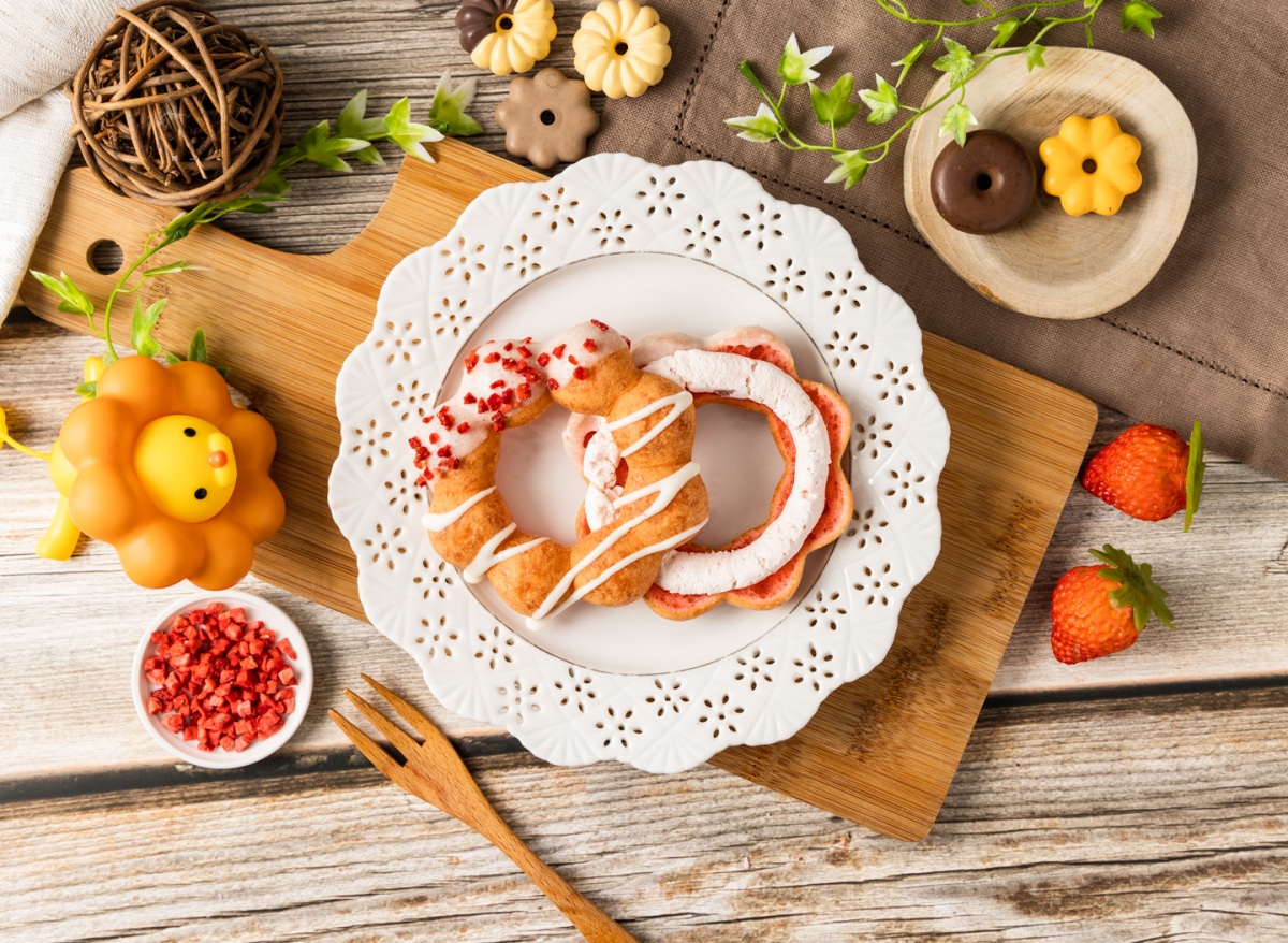草莓季同場加映相機先食款「蜜糖草莓波堤」,以及擁有蛋糕般口感的姊妹甜甜圈「蜜糖草莓歐菲香」外表裹上薄脆草莓蜜糖豐富入口層次,享受雙重草莓的幸福滋味。搭配微酸草莓巧克力醬的「嘎滋白草莓波堤」和奢華版「3重草莓波堤」,以草莓乾粒及些許細砂糖拌入草莓白巧克力沾醬打造滿足的嘎滋口感,最後則是草莓蹦上蜜桃的「草莓蜜桃波堤」,將富含果肉的草莓蜜桃鮮奶油擠滿沾附嘎滋醬的草莓波堤夾層,每一口都是桃不了的莓好滋味!