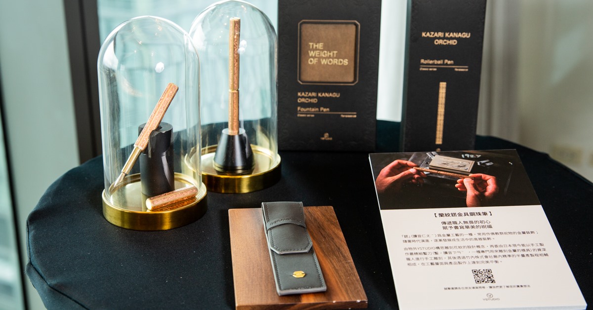 工藝精品「蘭紋錺金具鋼珠筆」係由物外YSTUDIO構思金屬雕刻花紋,結合台灣代表花卉蘭花、與基礎唐草紋樣蔓草作為圖騰概念設計圖紙,完成後再交由擁有百年歷史的伊藤鋼雕刻所第三代傳人伊藤充浩進行極具挑戰的錺金具手工技法雕刻工事。在日本絕世國寶級職人的精密刀工裡,傾注了一千四百年前日本飛鳥時代(西元592年至710年間)迄今的金屬雕刻技藝流變,最後再透過竹內錺金具株式會社精密準確的衝壓機具半量產製程完成,在工藝設計與產品製作達到最完美的平衡!