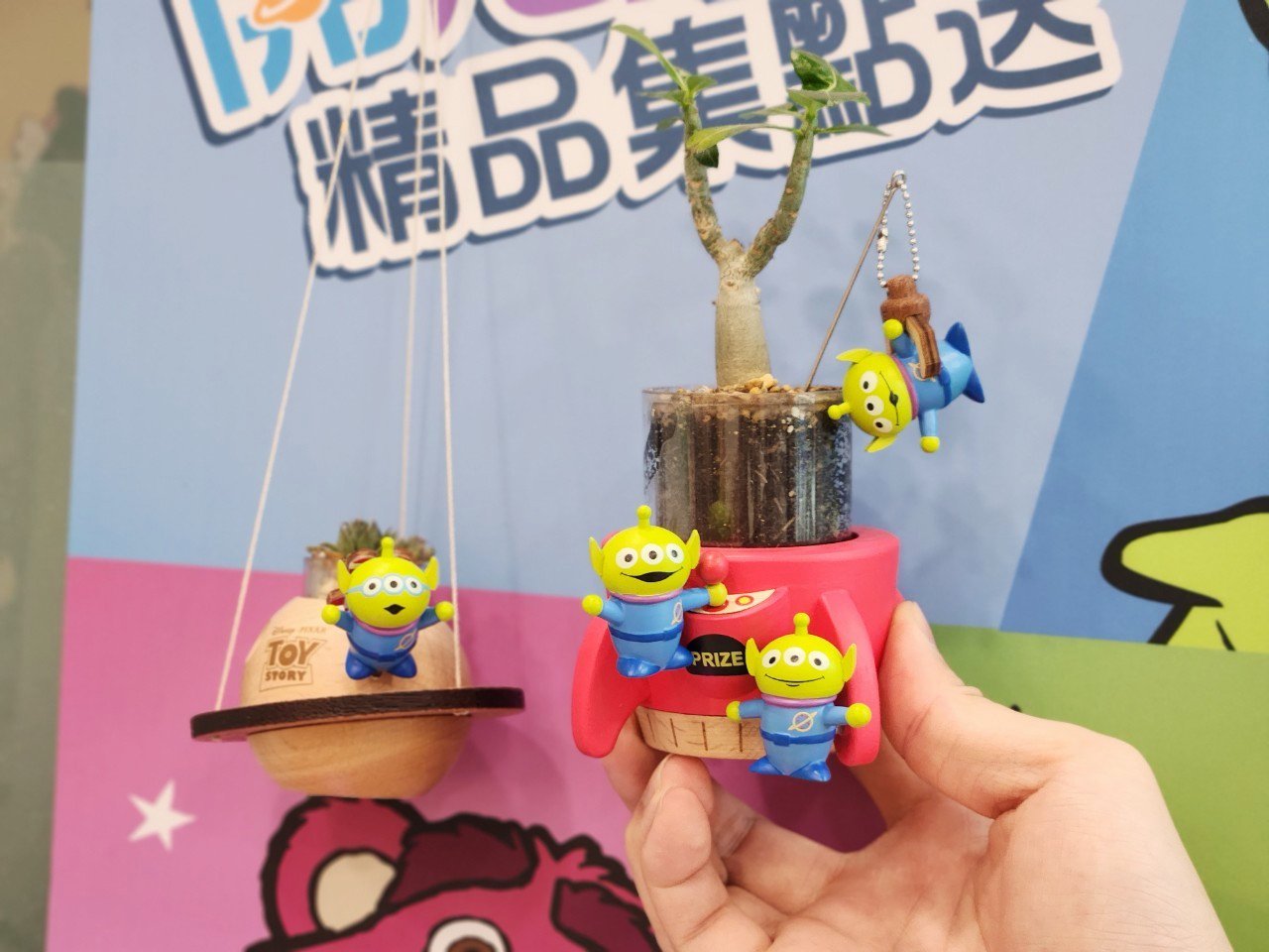 想要妝點辦公桌和房間,就絕對不能少了7-ELEVEN與知音文創合作推出的「三眼怪盆器」,有星球S號與火箭盆M號兩款(商品不含植物),妞妞們都可以自由擺放!另外還有炒可愛的「旋轉音樂鈴」,三眼怪、胡迪與翠絲都會隨著音樂旋轉擺動,看著就超療癒。