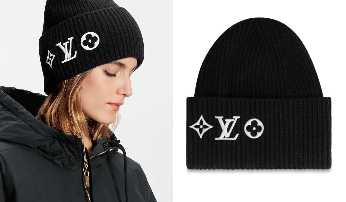 這款LV Headline羅紋冷帽已純羊毛針織面料打造,搭配上的是LV經典的標誌以及Monogram刺繡圖案點綴,銀色的刺繡圖紋在黑色的毛帽上看起來格外搶眼;另一款LV Spark羅紋冷帽搭配的是小巧精緻的金屬LV標誌,帽身是山羊絨材質,溫暖又有俐落感。